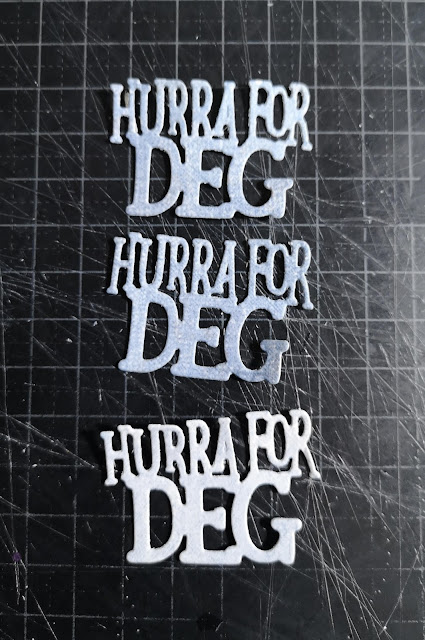 "Hurra for deg" er en dies og den stanset jeg ut 3 ganger og limte disse opp på hverandre.